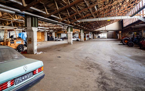 Garagenfläche ca. 315 m² inkl. Dachgeschoss ca. 2.190 m³ umbauter Raum. Das Werkstattgebäude ist teilweise unterkellert, 2 Geschosse, Montagegrube,