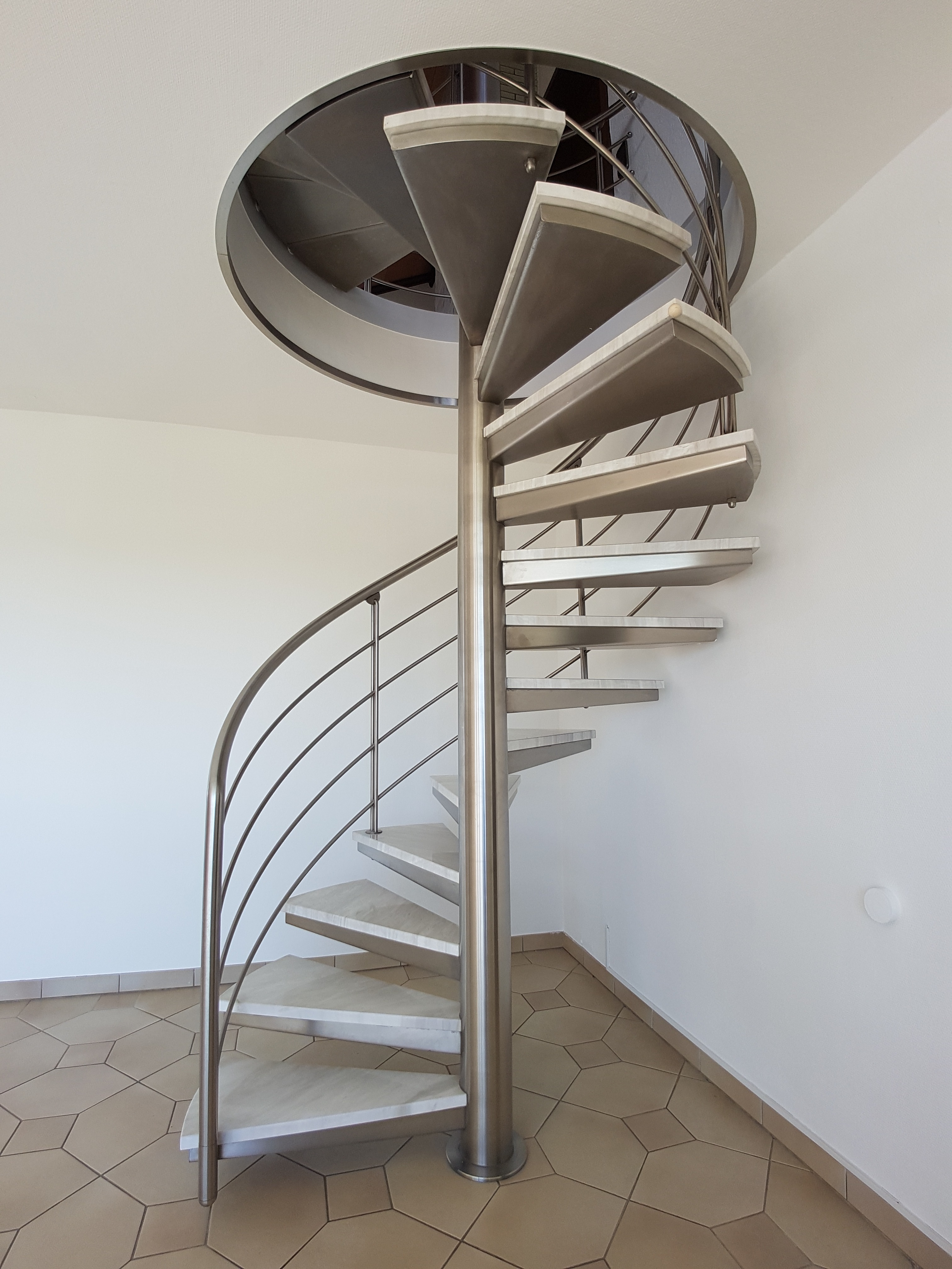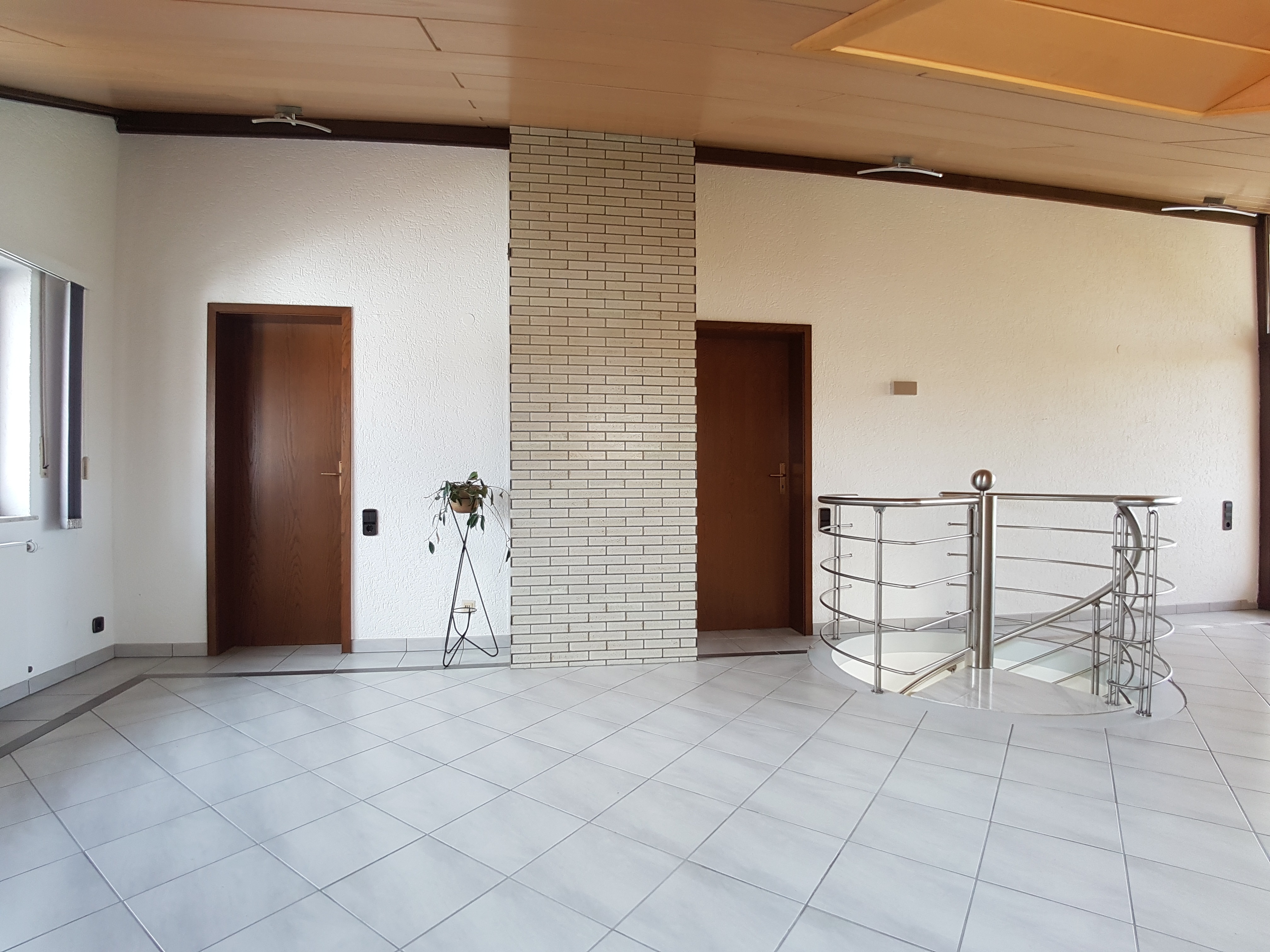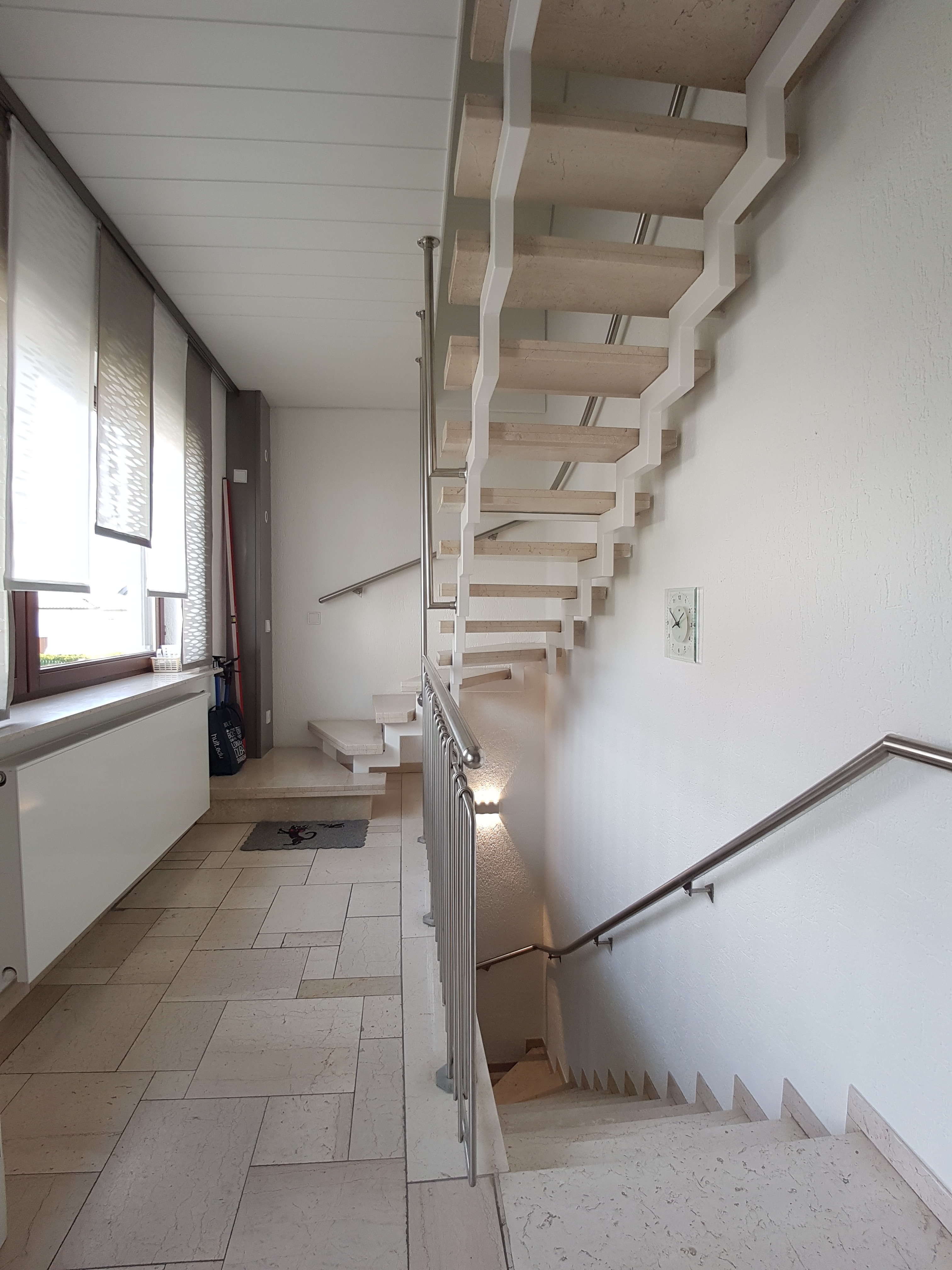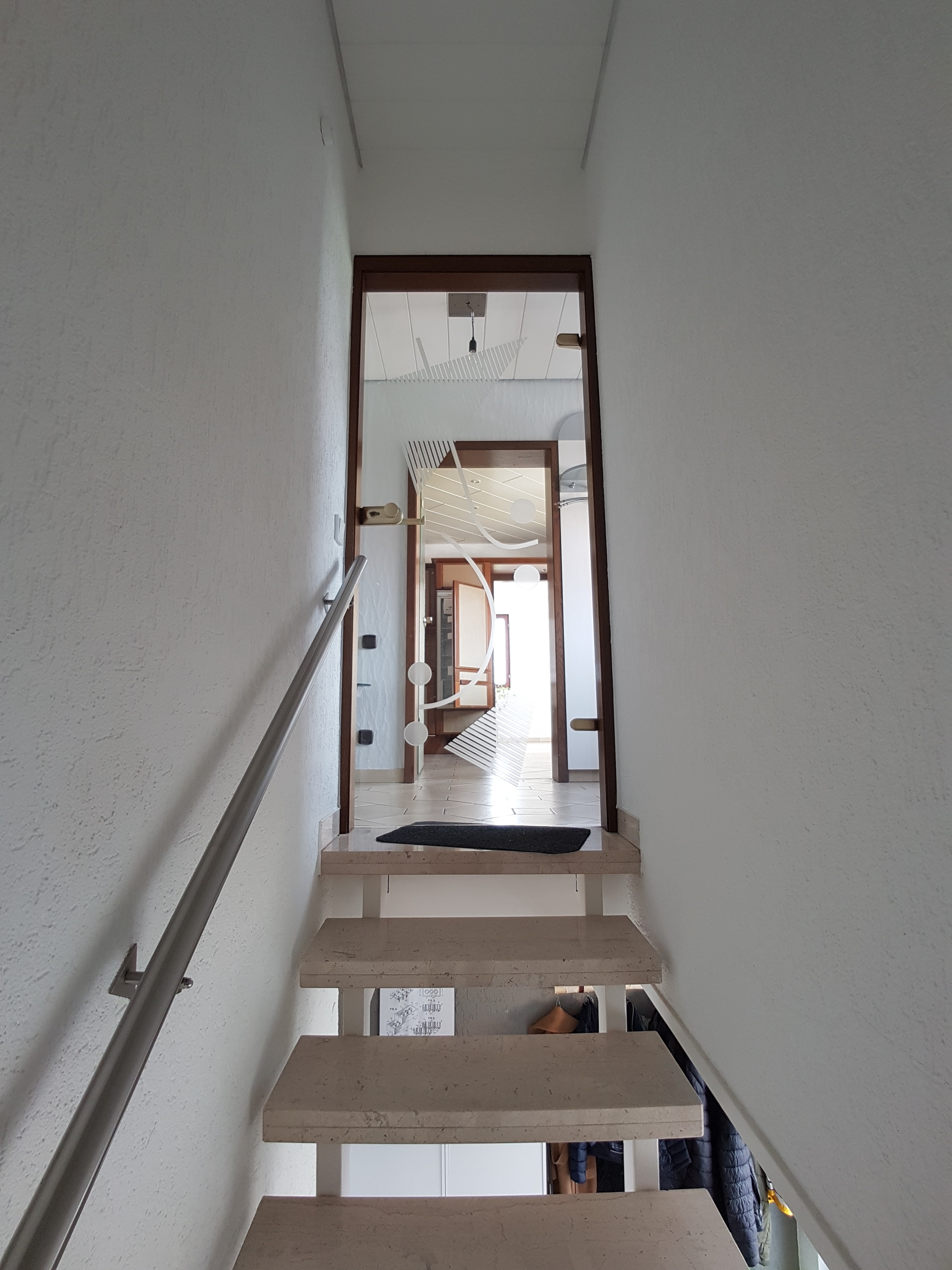 Über das gemeinsame Treppenhaus gelangt man in das 1. Obergeschoss