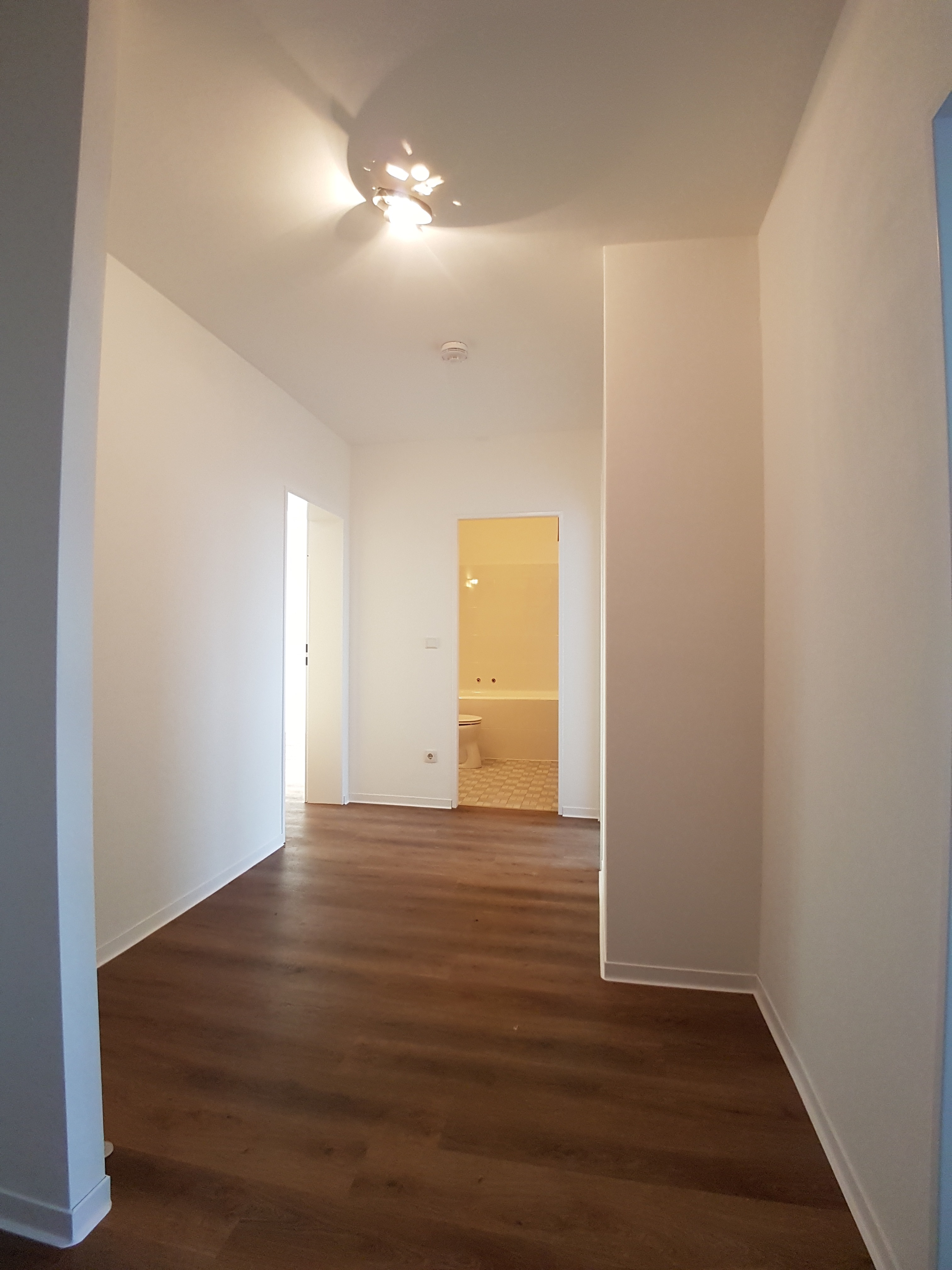Die Wohnräume sind mit einem hellen Vinyl Boden ausgestattet. Das innenliegende Badezimmer ist mit einer Badewanne ausgestattet.