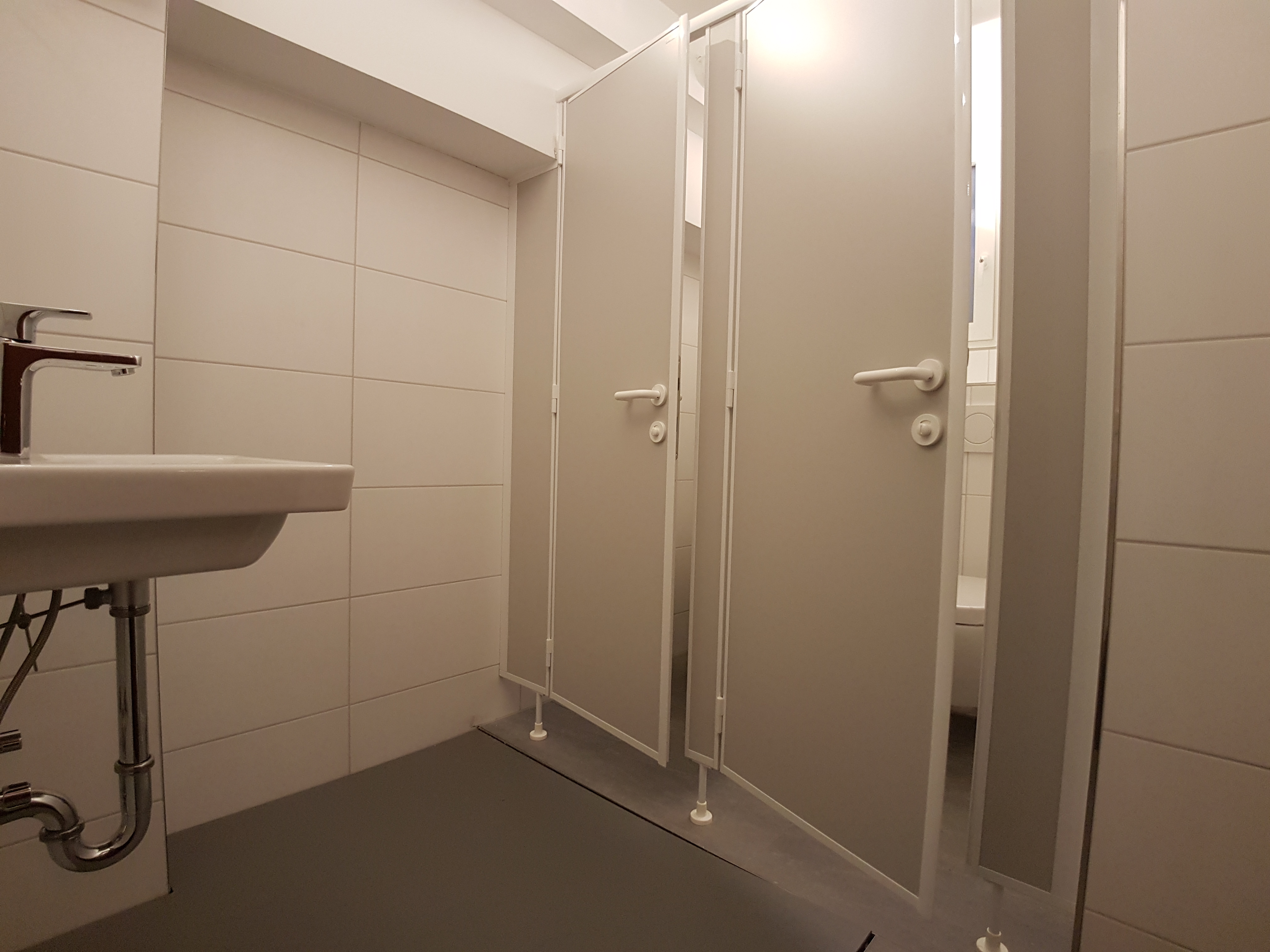 Hier befinden sich ein großer Raum offen gehalten, eine Küche mit EBK, 2 Abstellräume sowie eine Toiletten Anlage für Damen und Herren getrennt.
