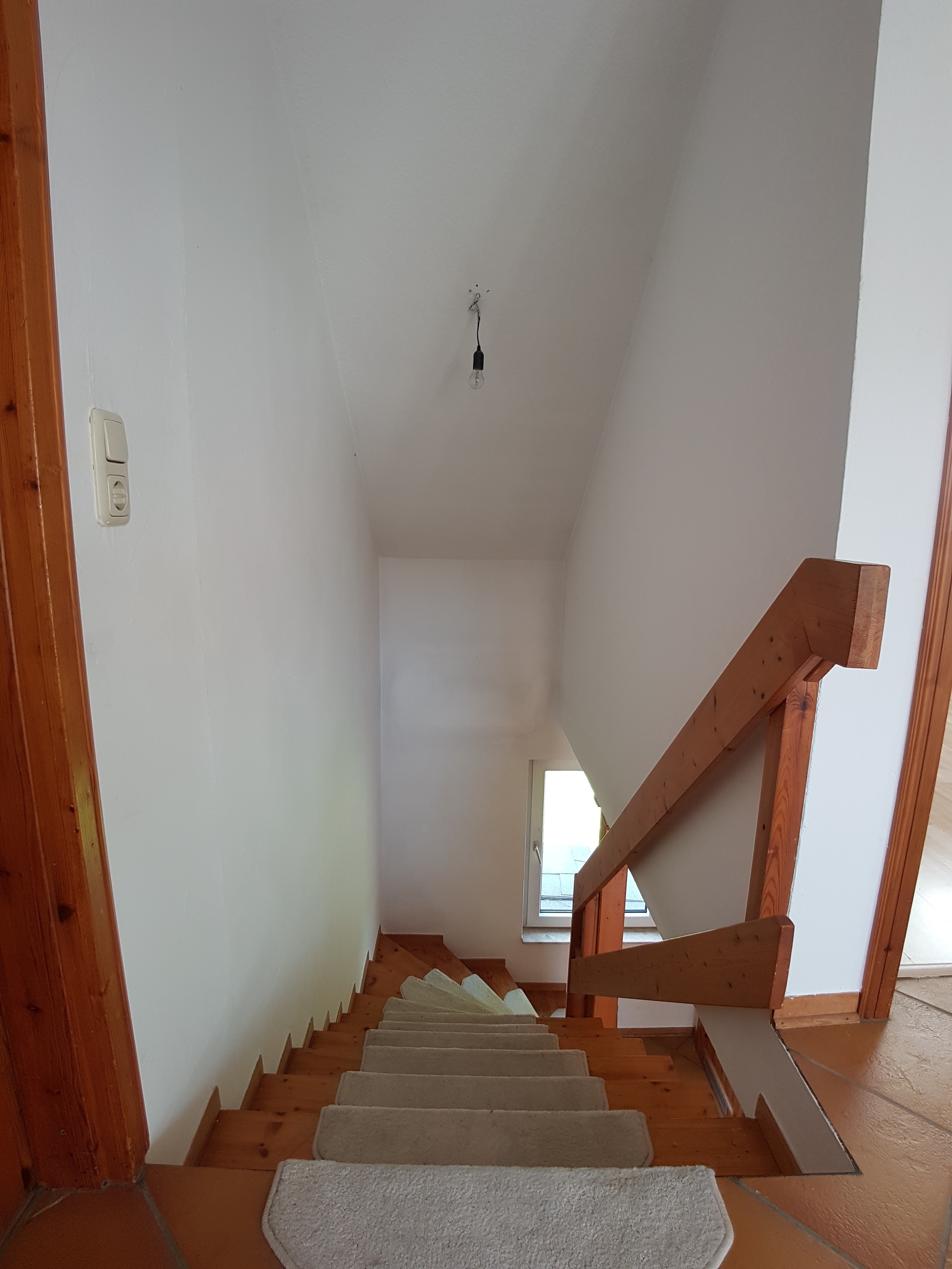 Es verfügt über eine Wohnfläche von ca. 100 m² die sich auf zwei Etagen wie folgt aufteilt: Diele mit Treppenaufgang, Wohnzimmer, Küche, Badezimmer mit Badewanne und Dusche, Abstellkammer im Erdgeschoss. Flur, Arbeitszimmer, Schlafzimmer und Gästezimmer im 1. Obergeschoss.