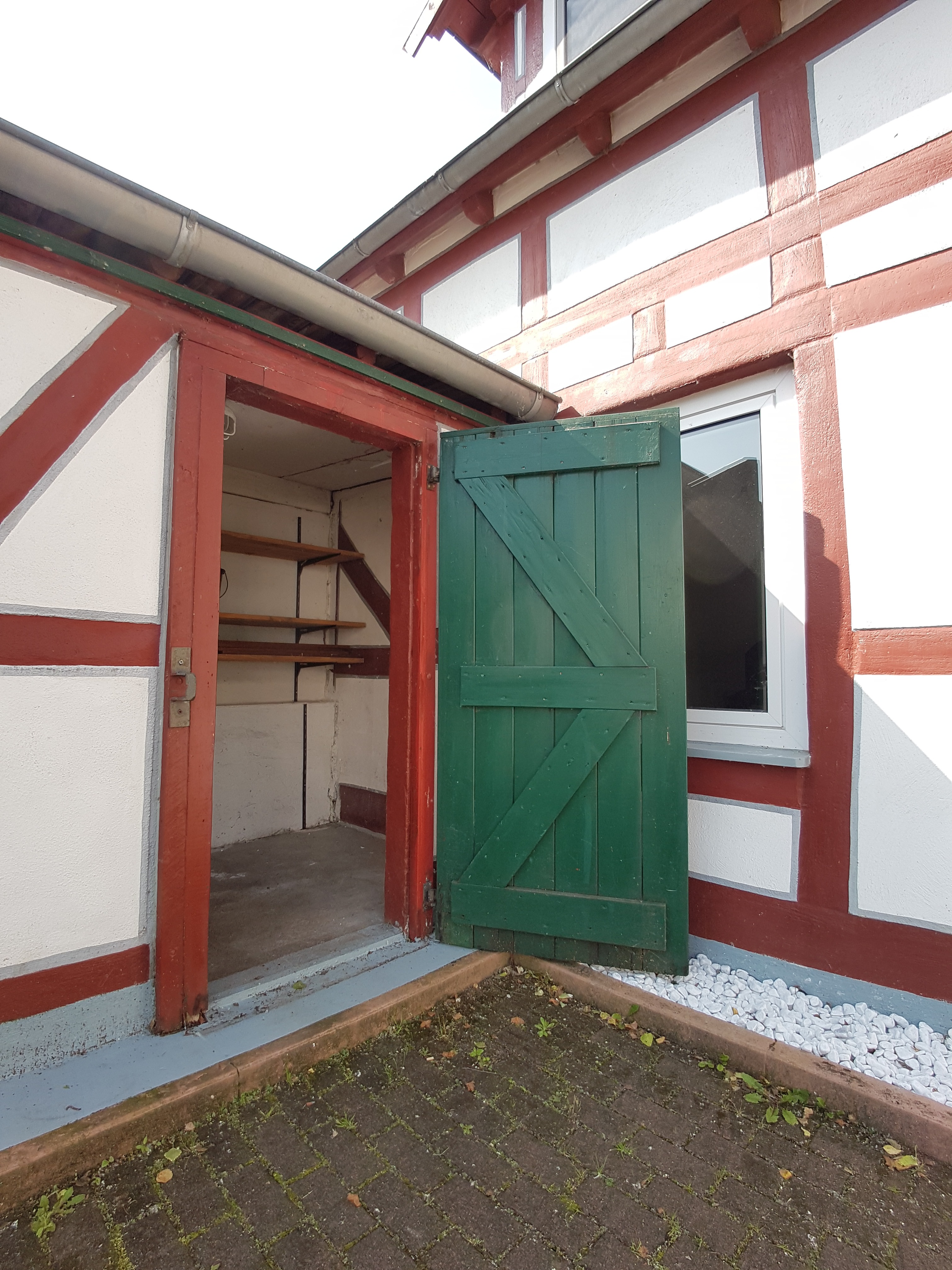 Das Haus ist nicht unterkellert. Dafür steht den Bewohnern ein kleiner Schuppen direkt am Haus und ein Kellerersatzraum am Freisitz zur Verfügung.