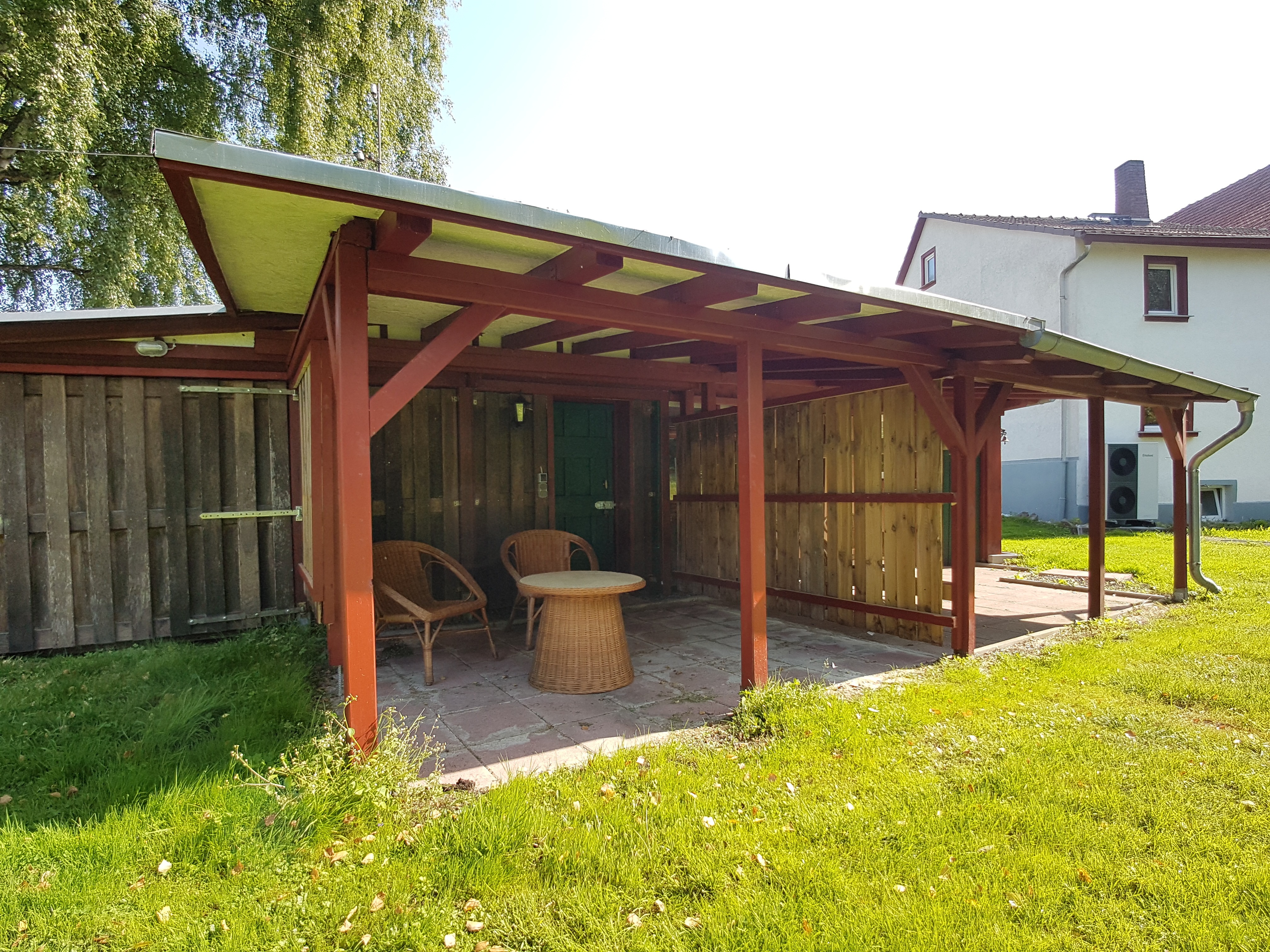 Der Freisitz (Süd-Ausrichtung) mit Blick auf den weitläufigen Garten bietet ausreichend Platz zum Sonne tanken!