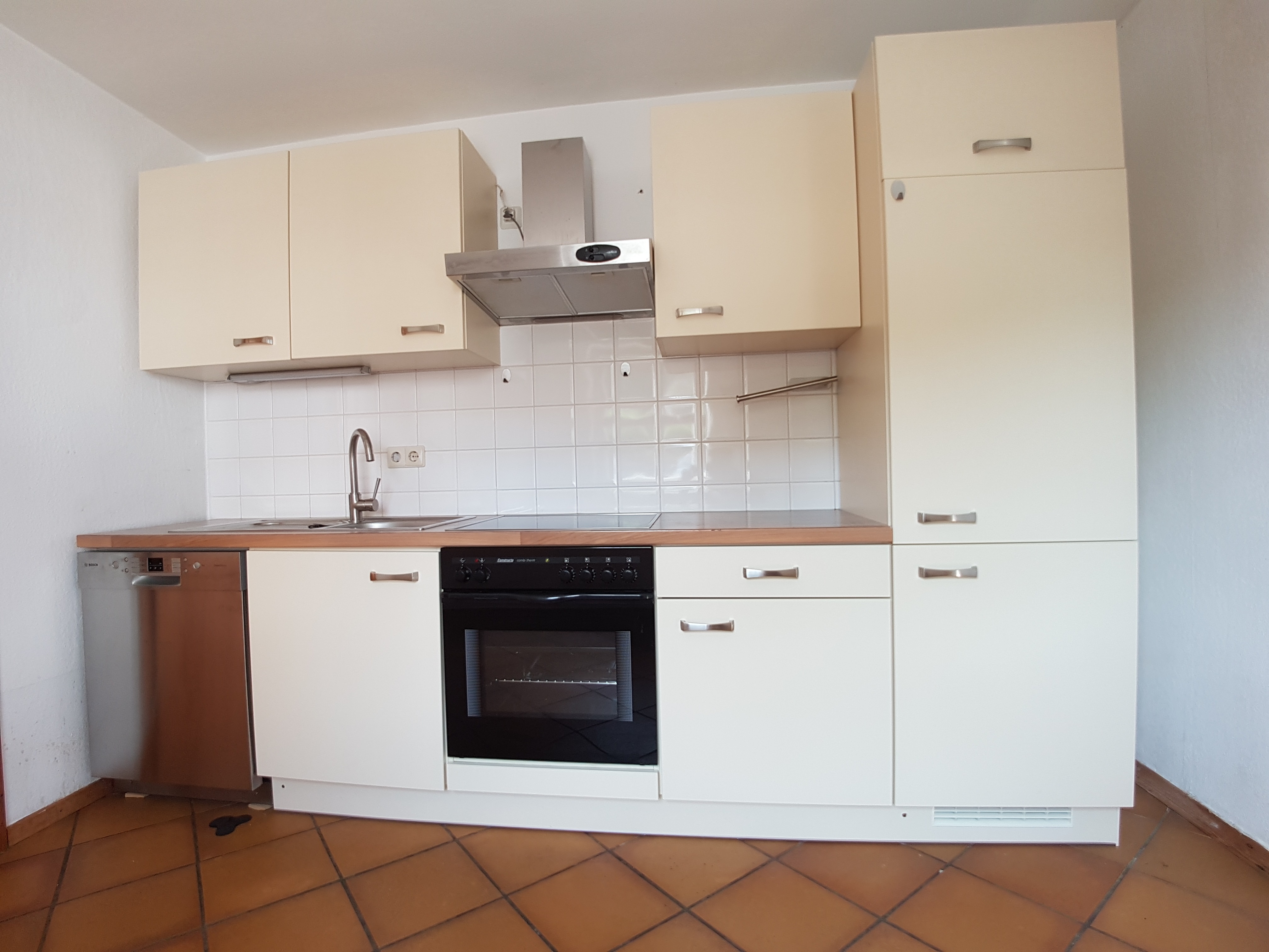 In der Küche ist eine Einbauküche mit allen elektrischen Geräten verbaut.