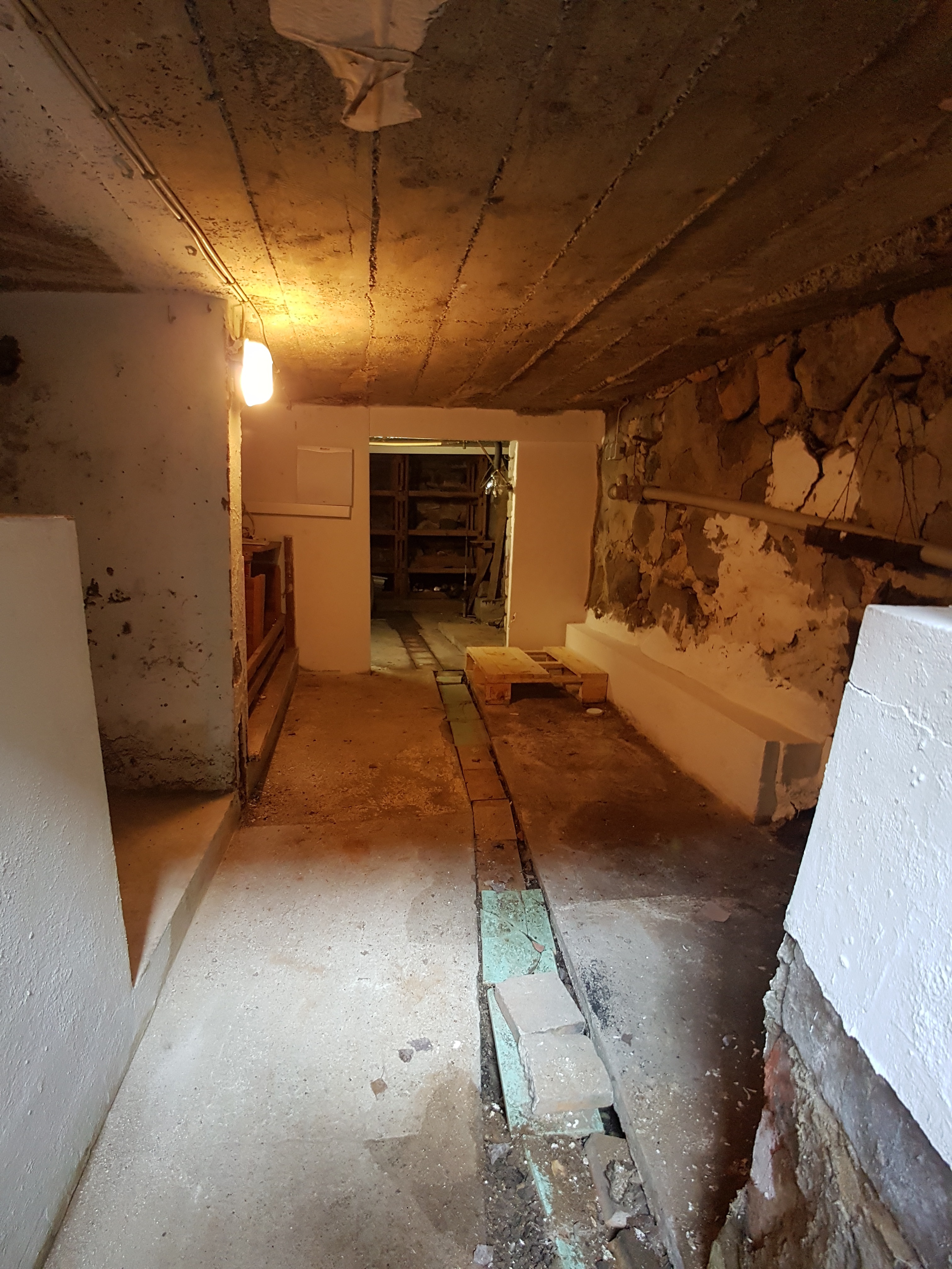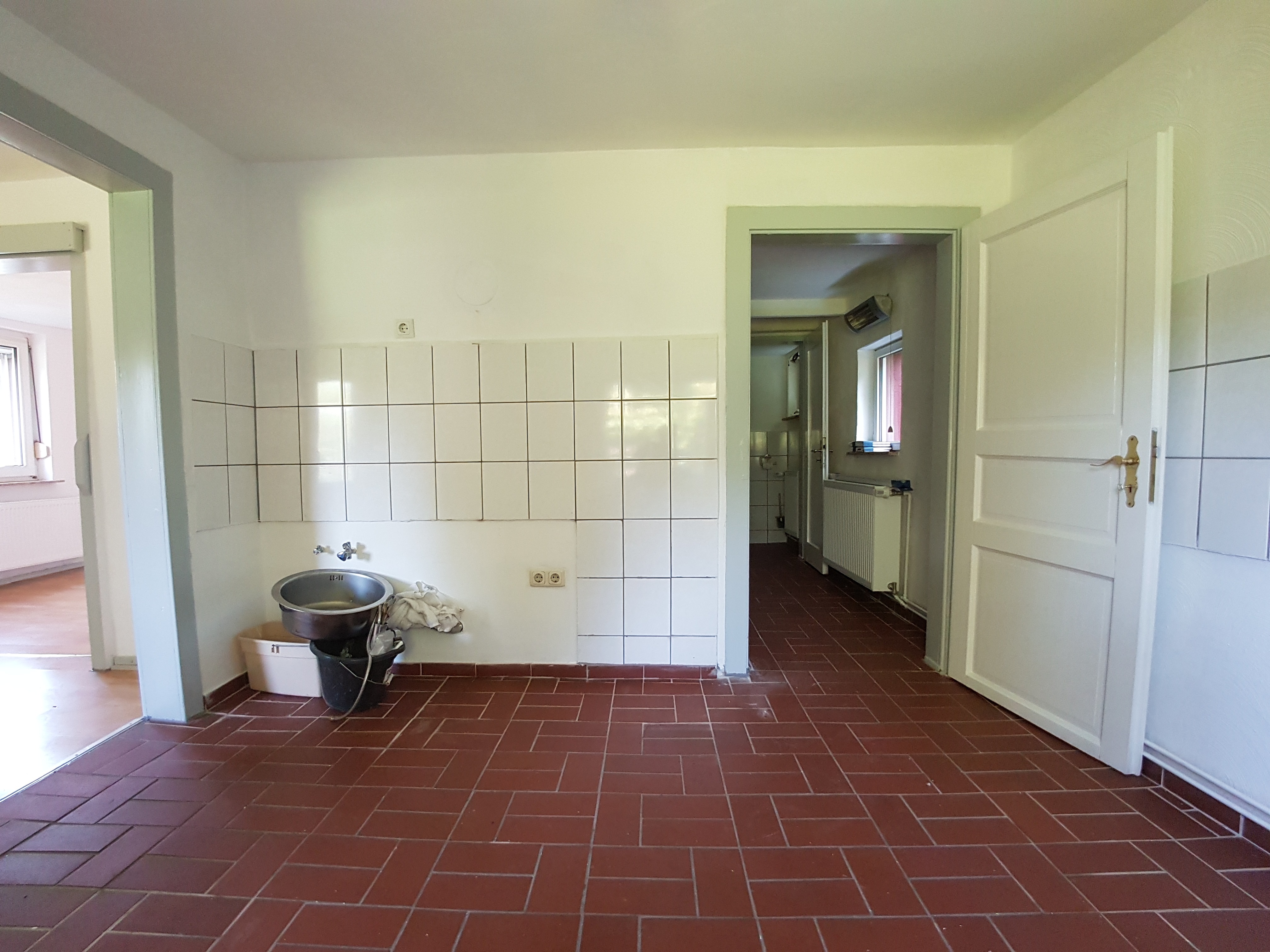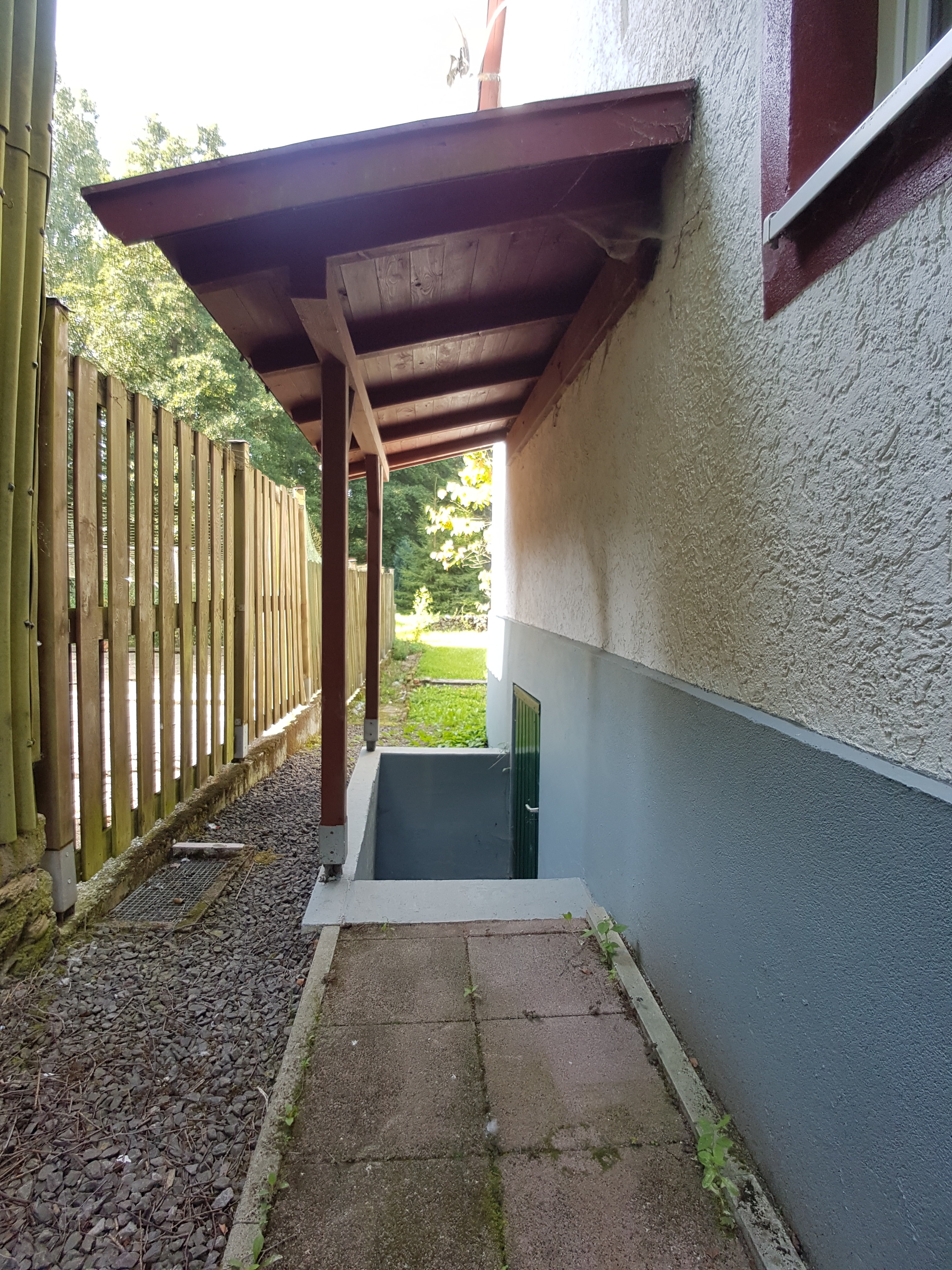 Das Haus ist unterkellert (Kriechkeller) und wird seitlich vom Haus begangen.