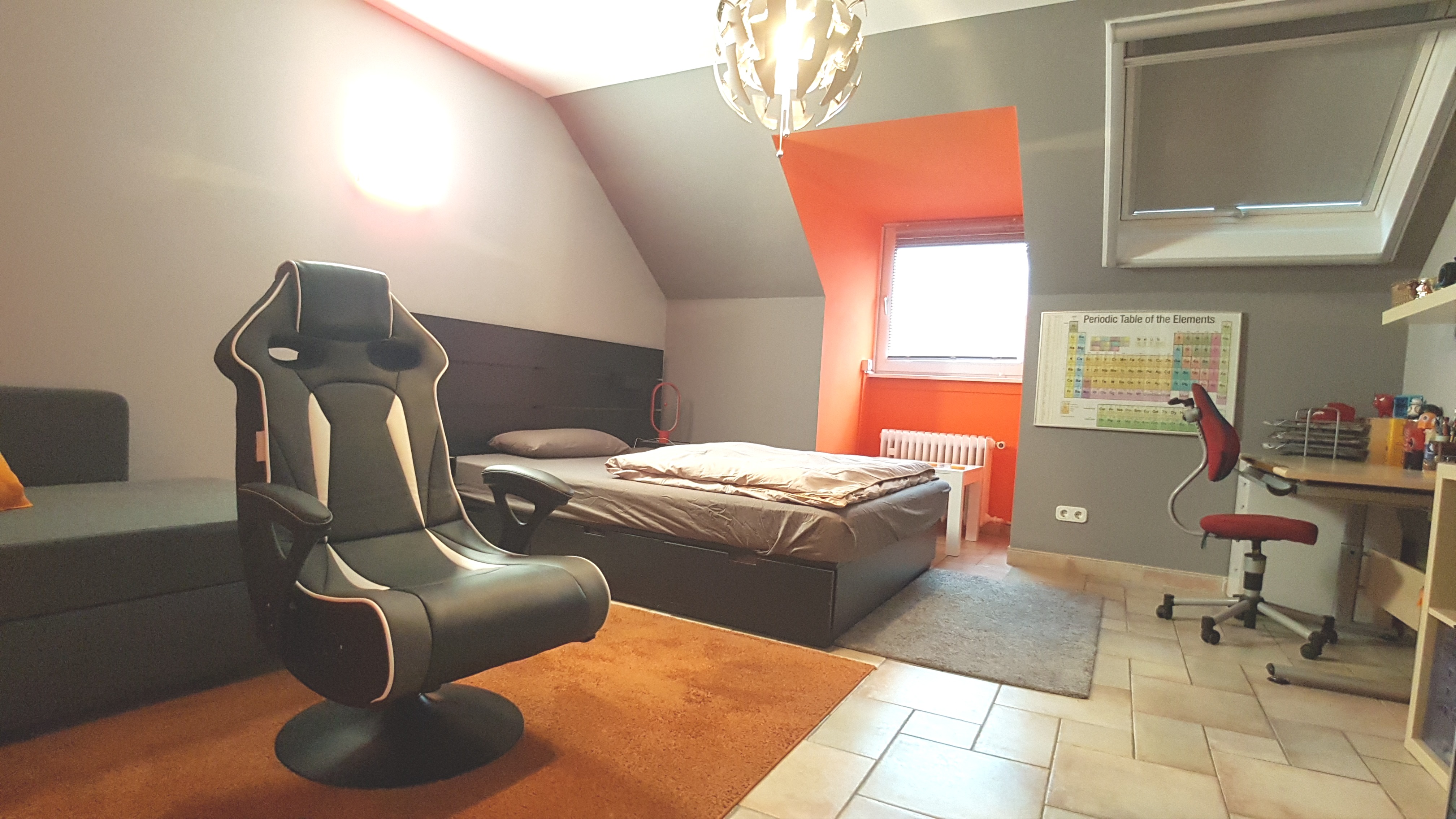 Der Anbau ist mit einer angenehmen Fußbodenheizung ausgestattet, während der Rest der Wohnung über Heizkörper beheizt wird, was eine individuelle Temperaturregelung ermöglicht.