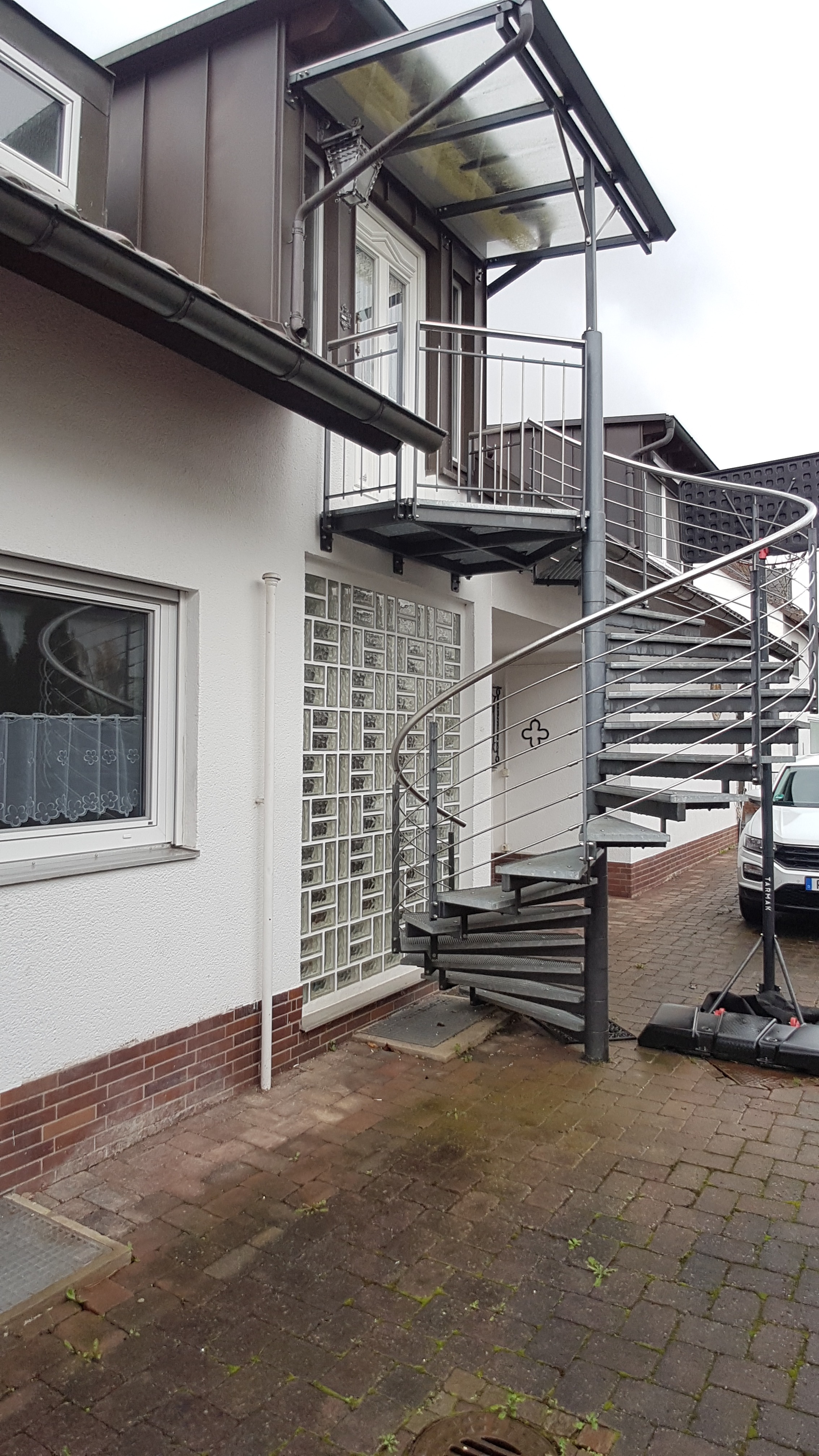 Der Zugang erfolgt über eine Spindeltreppe im Außenbereich.