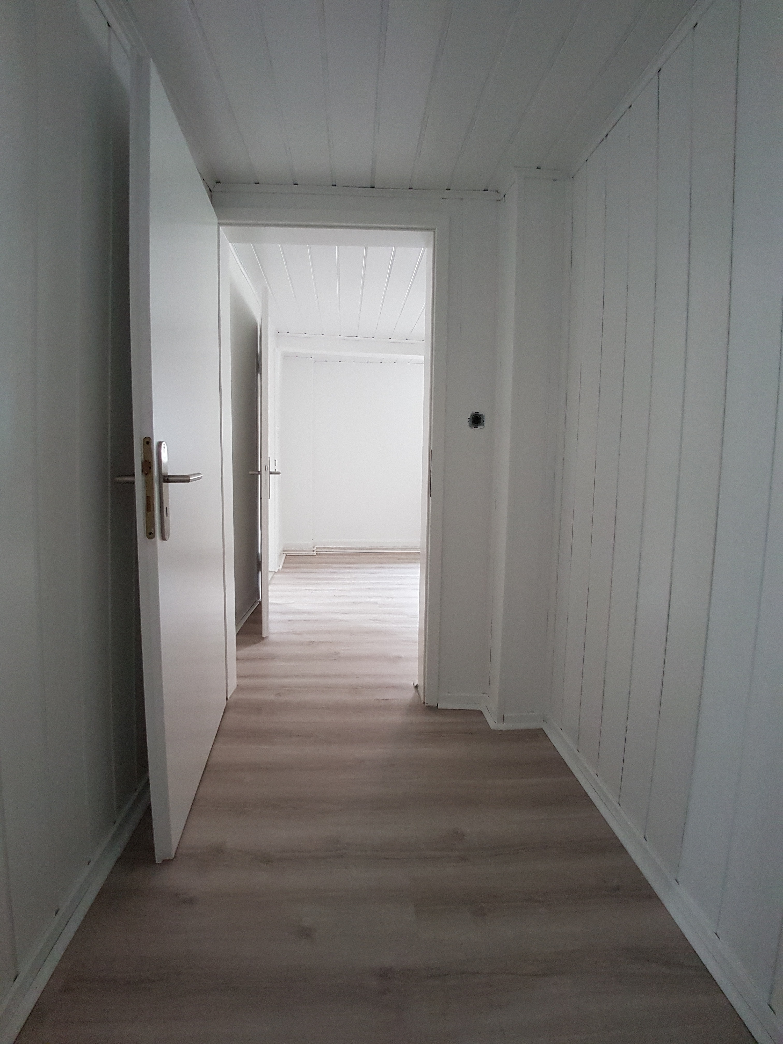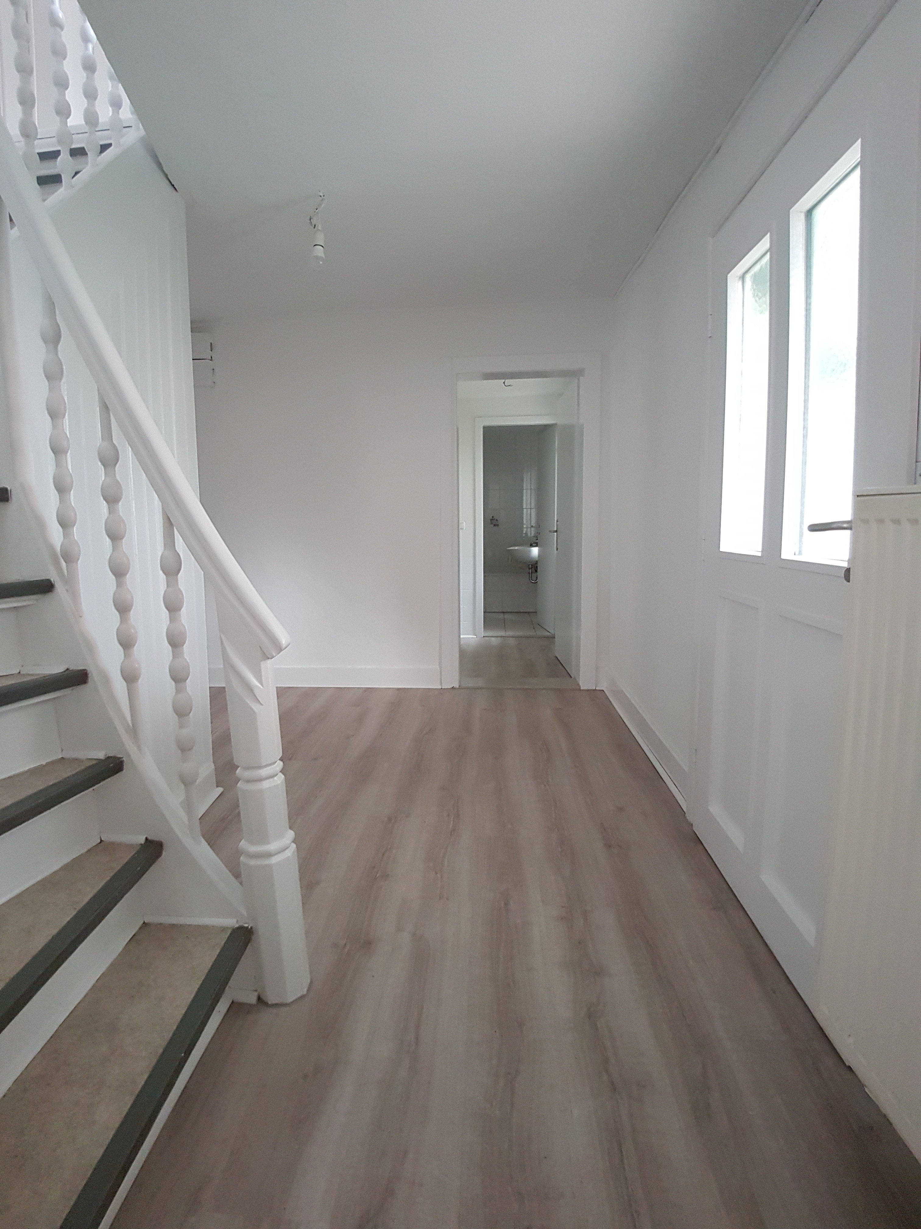 Die Wohnräume sind mit einem Vinylboden in Holzoptik ausgestattet. Die Tageslichtbadezimmer sind hell gefliest und mit einer Badewanne, einer Dusche (nur im Erdgeschoss), einem WC und einem Waschbecken ausgestattet.