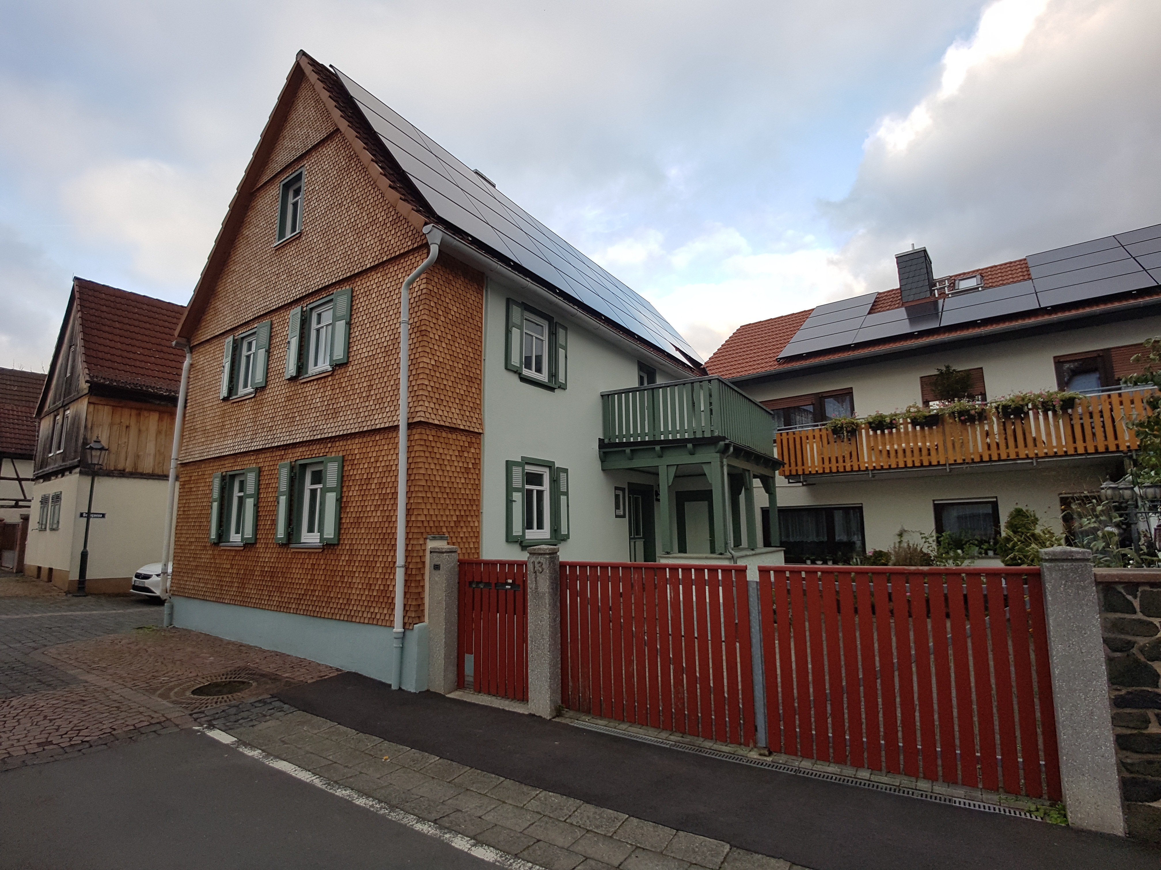 Das Fachwerkhaus wurde komplett renoviert und die Außenfassade bereits im letzten Jahr gestrichen und die Holzschindeln erneuert. Außerdem wurde im Herbst diesen Jahres eine Photovoltaikanlage auf dem Dach des Hauses montiert.