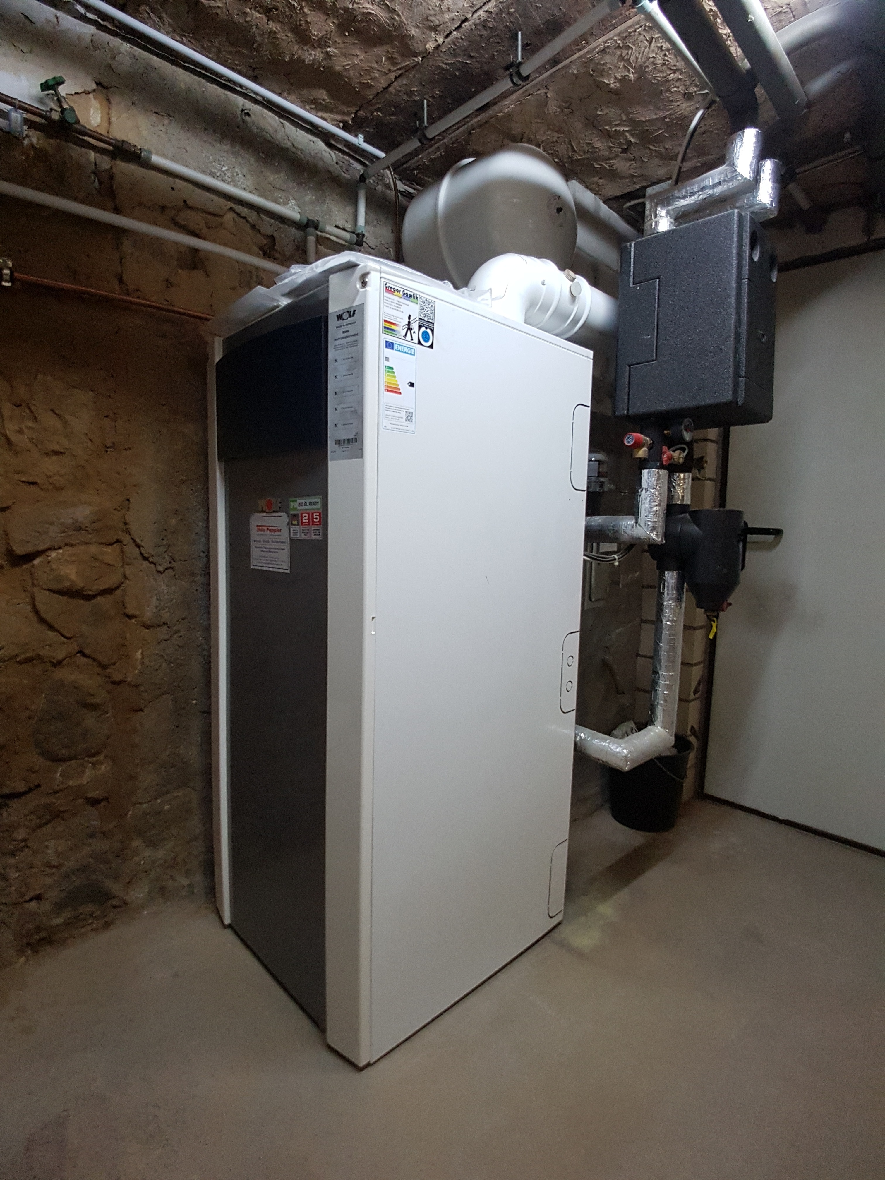 Das Haus ist halbseitig unterkellert. Hier befindet sich die Öl-Zentralheizung, die Öl-Tanks und der Stromspeicher der Photovoltaikanlage.