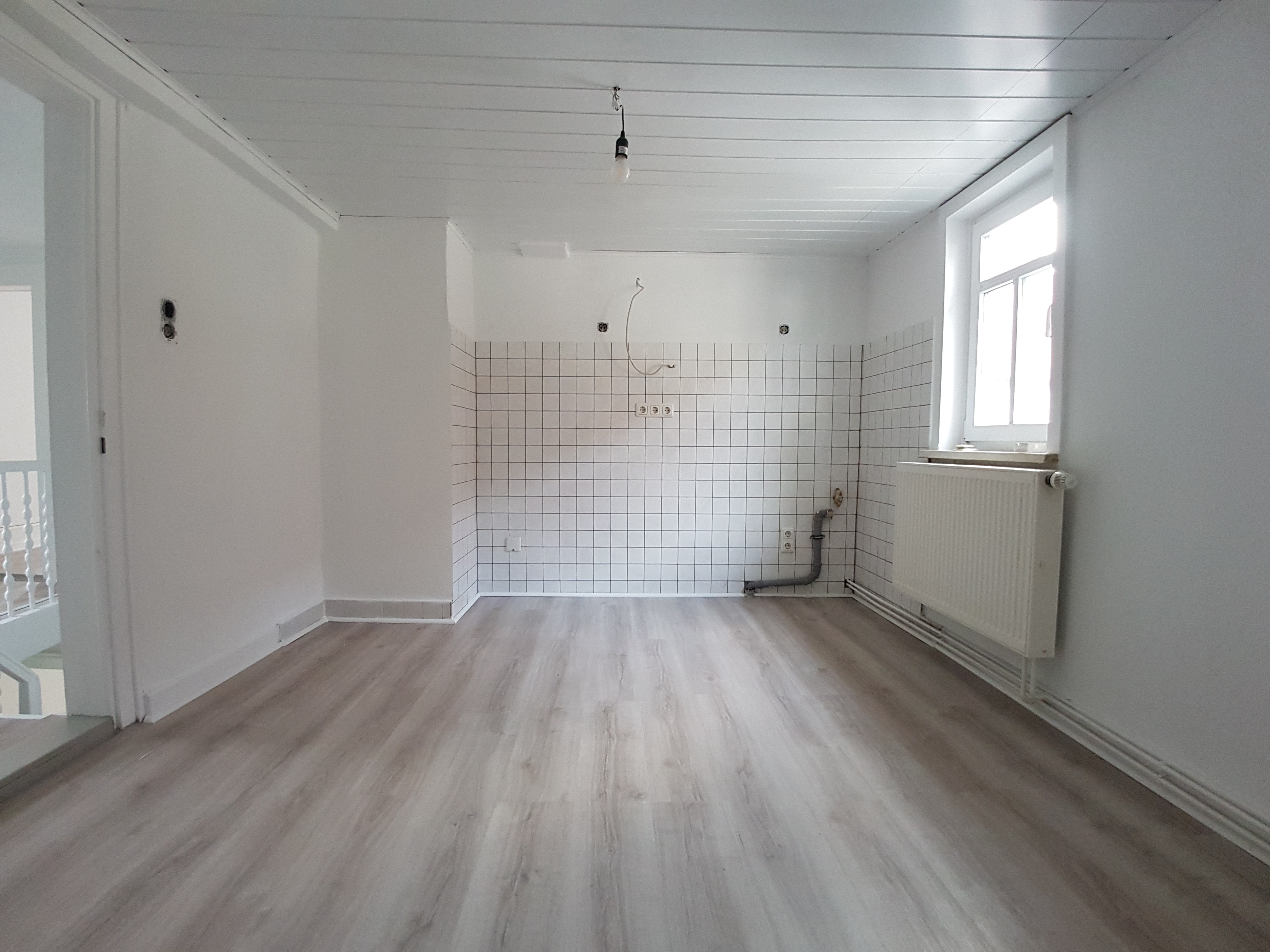 Im Erdgeschoss: Diele mit Treppenaufgang ins Obergeschoss, Wohnzimmer mit Durchgang zur Küche, Küche mit Zugang ins Esszimmer, Esszimmer, Flur, Abstellraum/Speisekammer und Badezimmer mit Dusche und Badewanne.