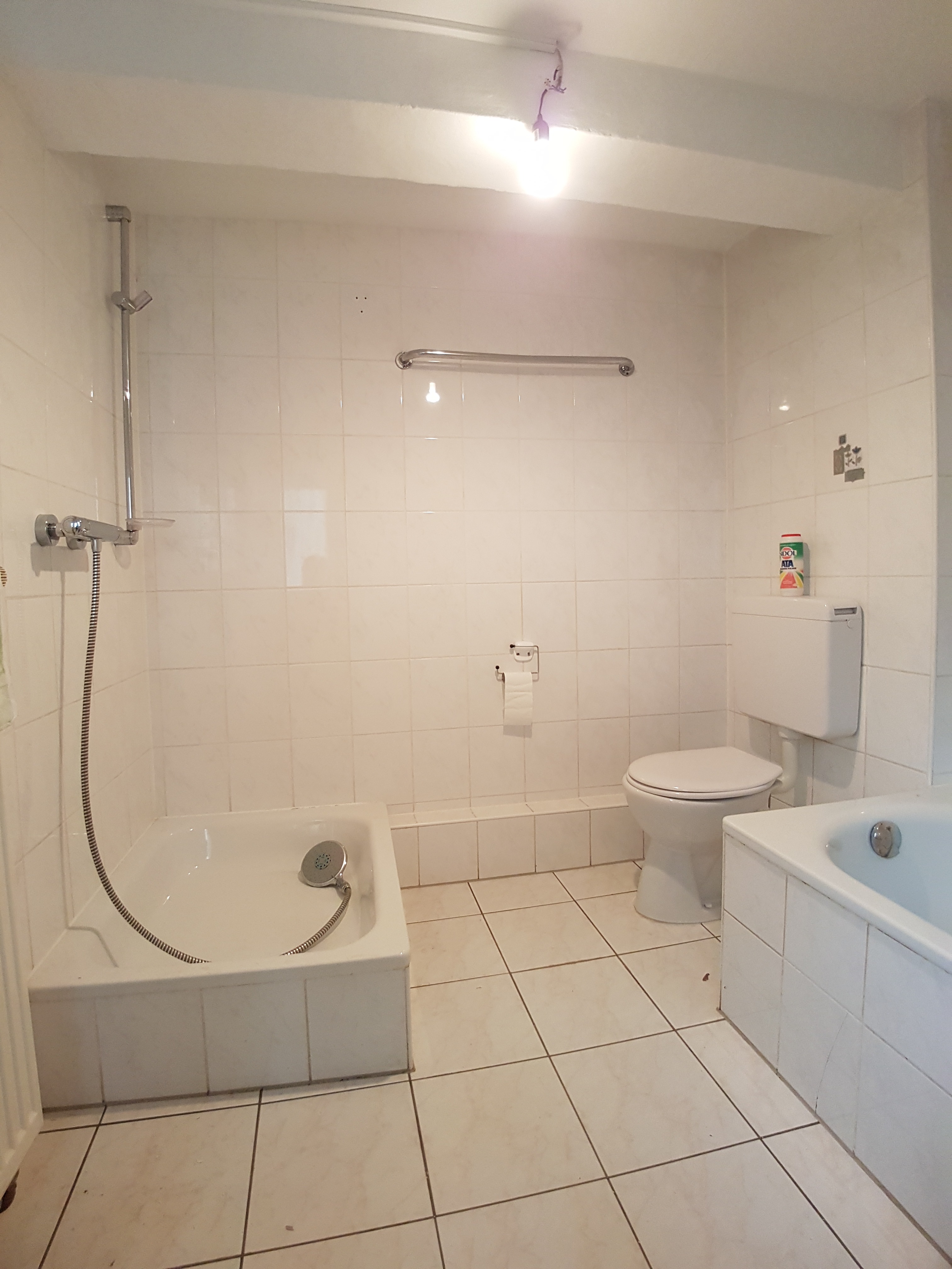– TGL-Badezimmer mit Dusche und Badewanne im EG